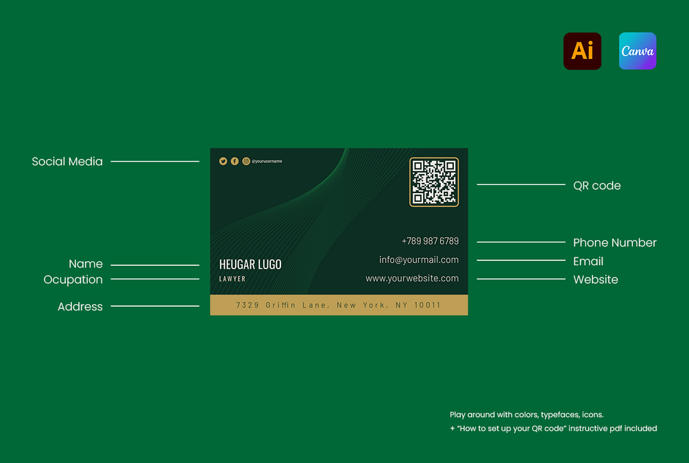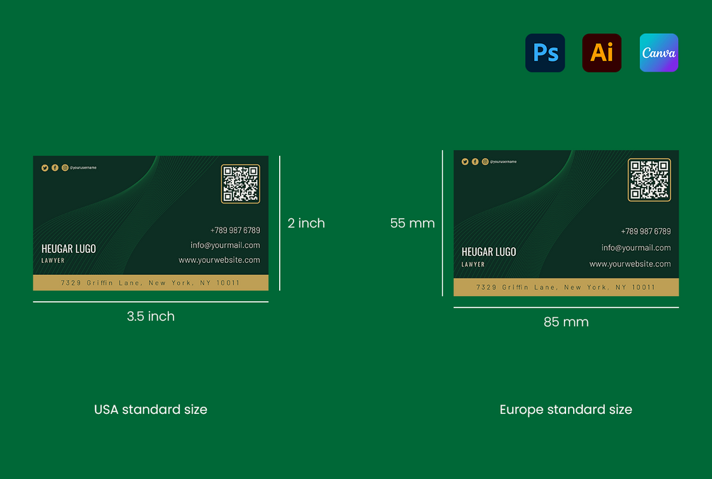 start off your business on the right foot with this double sided business card template. Leave a lasting professional impression while promoting your brand and also provide an interactive experience with the QR code. This ready to print double sided business card is fully editable in adobe illustrator & canva – use the one you feel more comfortable with, plus enjoy a high res mockup editable in Photoshop for both standard sizes.