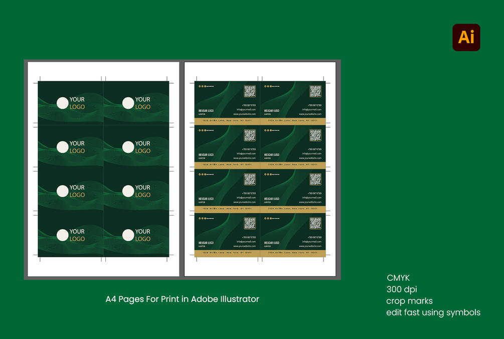 -1 layered .ai file for CC versions and other for CS4/CS5/CS6 versions of adobe illustrator with the business card template (US size) – CMYK – 300 dpi